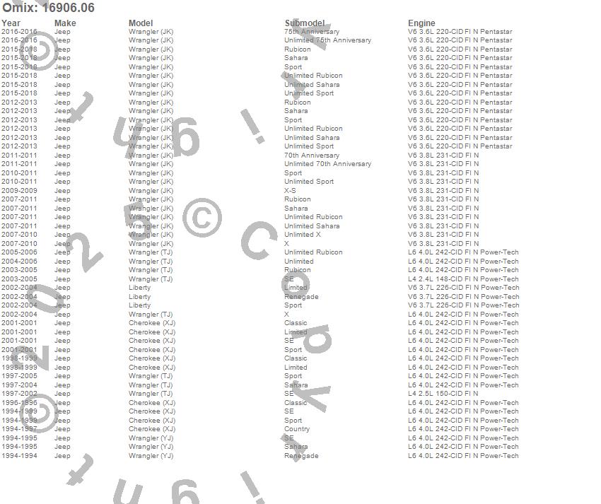 Cherokee (XJ), Liberty, Wrangler (JK), Wrangler (LJ), Wrangler (TJ), Wrangler (YJ), Jeep, 2018, 2017, 2016, 2015, 2013, 2012, 2011, 2010, 2009, 2008, 2007, 2006, 2005