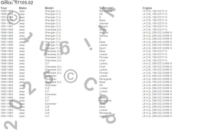 Cherokee (XJ), CJ5, CJ7, Scrambler, Wrangler (YJ), Jeep, 1995, 1994, 1993, 1992, 1991, 1990, 1989, 1988, 1987, 1986, 1985, 1984, 1983, 1982
