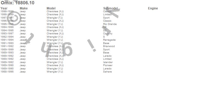 Cherokee (XJ), Wrangler (TJ), Wrangler (YJ), Jeep, 1999, 1998, 1997, 1996, 1995, 1994, 1993, 1992, 1991, 1990, 1989, 1988
