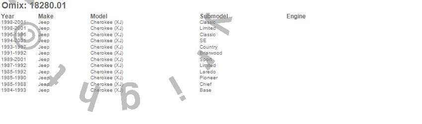 Cherokee (XJ), Jeep, 2001, 2000, 1999, 1998, 1997, 1996, 1995, 1994, 1993, 1992, 1991, 1990, 1989, 1988, 1987, 1986, 1985, 1984