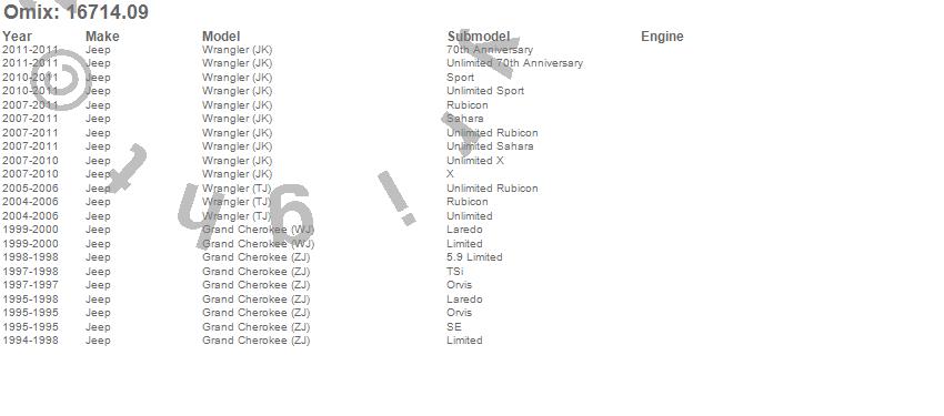Grand Cherokee (WJ), Grand Cherokee (ZJ), Wrangler (JK), Wrangler (LJ), Wrangler (TJ), Jeep, 2011, 2010, 2009, 2008, 2007, 2006, 2005, 2004, 2000, 1999, 1998, 1997, 1996, 1995
