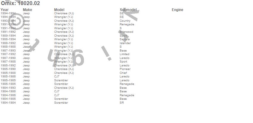 Cherokee (XJ), CJ7, Scrambler, Wrangler (YJ), Jeep, 1994, 1993, 1992, 1991, 1990, 1989, 1988, 1987, 1986, 1985, 1984