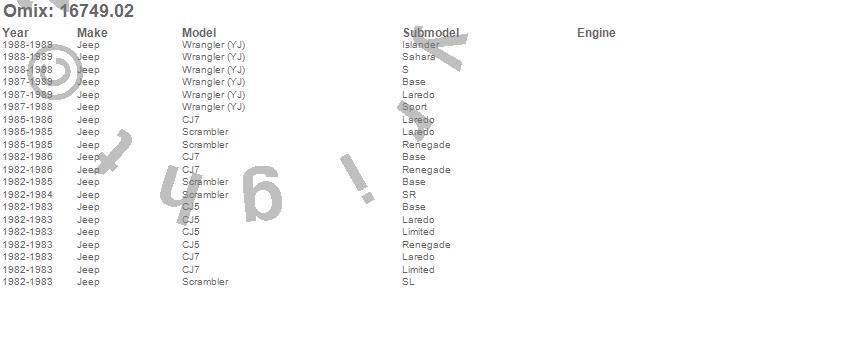 CJ5, CJ7, Scrambler, Wrangler (YJ), Jeep, 1989, 1988, 1987, 1986, 1985, 1984, 1983, 1982