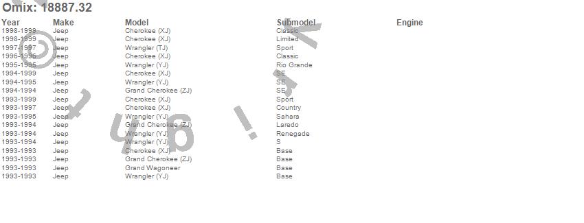 Cherokee (XJ), Grand Cherokee (ZJ), Grand Wagoneer, Wrangler (TJ), Wrangler (YJ), Jeep, 1999, 1998, 1997, 1996, 1995, 1994, 1993
