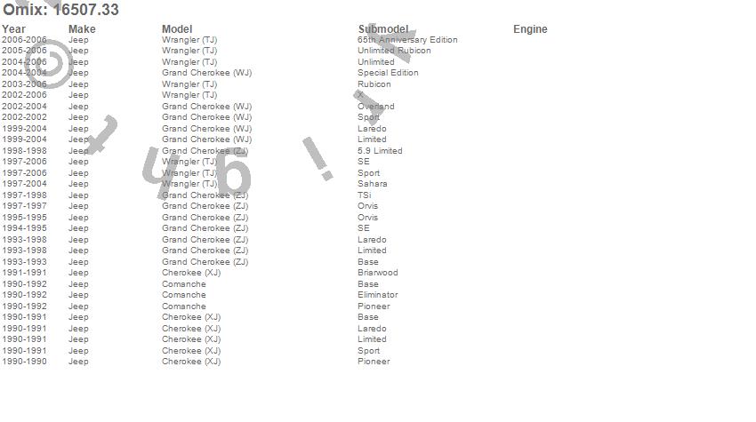 Cherokee (XJ), Comanche, Grand Cherokee (WJ), Grand Cherokee (ZJ), Wrangler (LJ), Wrangler (TJ), Jeep, 2006, 2005, 2004, 2003, 2002, 2001, 2000, 1999, 1998, 1997, 1996, 1995, 1994