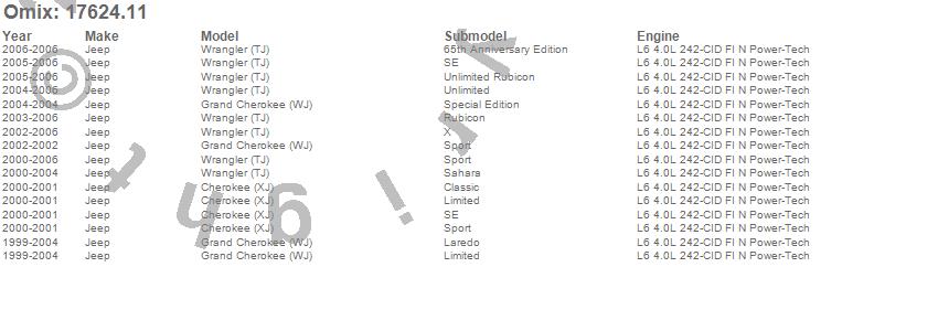 Cherokee (XJ), Grand Cherokee (WJ), Wrangler (LJ), Wrangler (TJ), Jeep, 2006, 2005, 2004, 2003, 2002, 2001, 2000, 1999