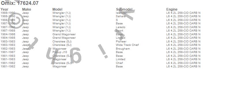 Cherokee (SJ), Grand Wagoneer, J10, Wagoneer, Wrangler (YJ), Jeep, 1990, 1989, 1988, 1987, 1986, 1985, 1984, 1983, 1982, 1981