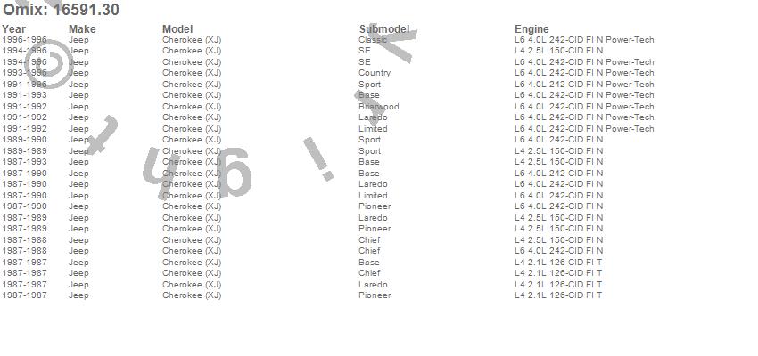 Cherokee (XJ), Jeep, 1996, 1995, 1994, 1993, 1992, 1991, 1990, 1989, 1988, 1987