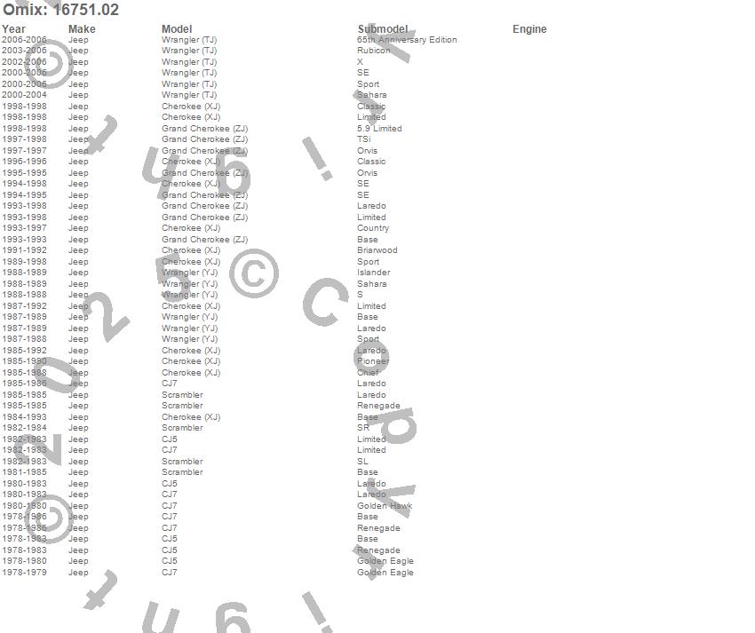 Cherokee (XJ), CJ5, CJ7, Grand Cherokee (ZJ), Scrambler, Wrangler (TJ), Wrangler (YJ), Jeep, 2006, 2005, 2004, 2003, 2002, 2001, 2000, 1998, 1997, 1996, 1995, 1994