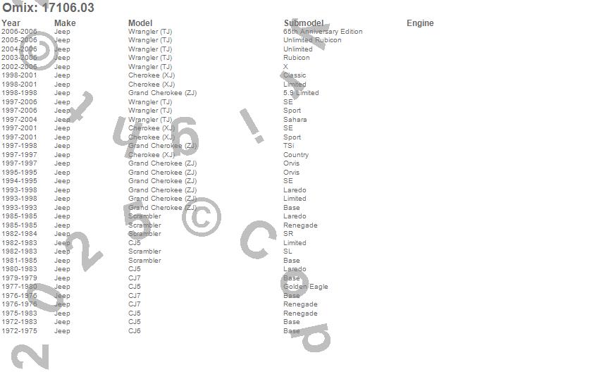 Cherokee (XJ), CJ5, CJ6, CJ7, Grand Cherokee (ZJ), Scrambler, Wrangler (LJ), Wrangler (TJ), Jeep, 2006, 2005, 2004, 2003, 2002, 2001, 2000, 1999, 1998, 1997, 1996