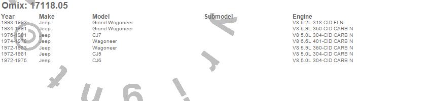 CJ5, CJ6, CJ7, Grand Wagoneer, Wagoneer, Jeep, 1993, 1991, 1990, 1989, 1988, 1987, 1986, 1985, 1984, 1983, 1982, 1981, 1980, 1979