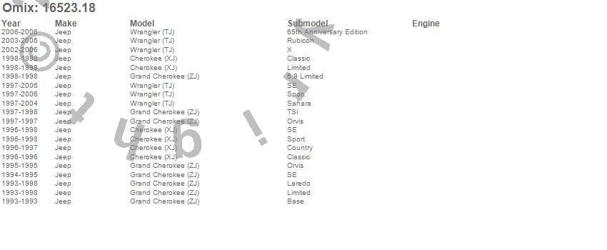 Cherokee (XJ), Grand Cherokee (ZJ), Wrangler (TJ), Jeep, 2006, 2005, 2004, 2003, 2002, 2001, 2000, 1999, 1998, 1997, 1996, 1995, 1994, 1993