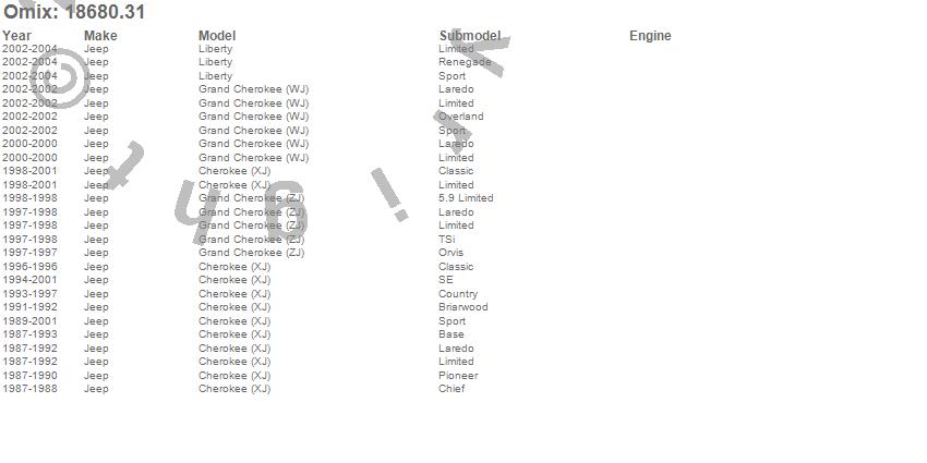 Cherokee (XJ), Grand Cherokee (WJ), Grand Cherokee (ZJ), Liberty, Jeep, 2004, 2003, 2002, 2001, 2000, 1999, 1998, 1997, 1996, 1995, 1994, 1993, 1992, 1991, 1990