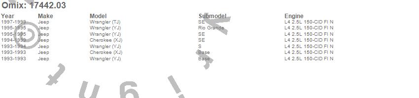 Cherokee (XJ), Wrangler (TJ), Wrangler (YJ), Jeep, 2002, 2001, 2000, 1999, 1998, 1997, 1996, 1995, 1994, 1993