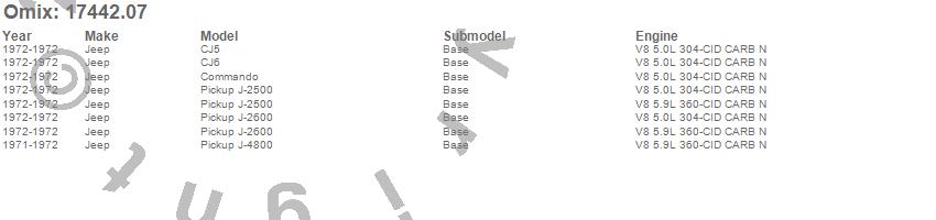 Cherokee (SJ), CJ5, CJ6, CJ7, Commando, Grand Wagoneer, J-2500, J-2600, J-4800, J10, J20, Wagoneer, Jeep, 1991, 1990, 1989, 1988, 1987, 1986, 1985