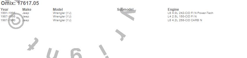 Wrangler (YJ), Jeep, 1995, 1994, 1993, 1992, 1991, 1990, 1989, 1988, 1987