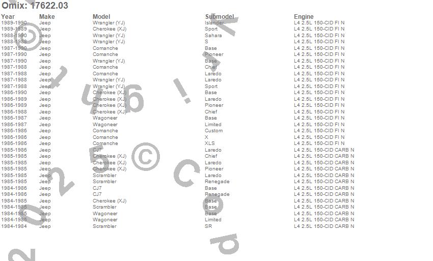 Cherokee (XJ), CJ7, Comanche, Scrambler, Wagoneer, Wrangler (YJ), Jeep, 1990, 1989, 1988, 1987, 1986, 1985, 1984
