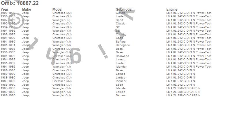 Cherokee (XJ), Wrangler (TJ), Wrangler (YJ), Jeep, 1999, 1998, 1997, 1996, 1995, 1994, 1993, 1992, 1991, 1990, 1989, 1988