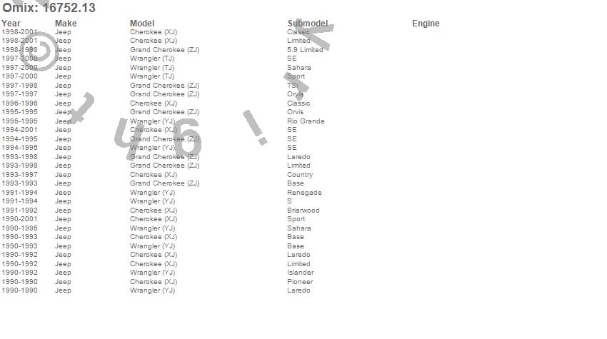 Cherokee (XJ), Grand Cherokee (ZJ), Wrangler (TJ), Wrangler (YJ), Jeep, 2001, 2000, 1999, 1998, 1997, 1996, 1995, 1994, 1993, 1992, 1991, 1990