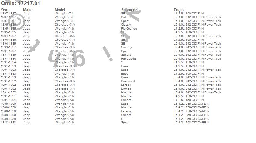 Cherokee (XJ), Wrangler (TJ), Wrangler (YJ), Jeep, 1997, 1996, 1995, 1994, 1993, 1992, 1991, 1990, 1989, 1988