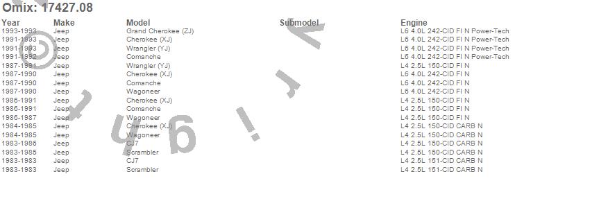 Cherokee (XJ), CJ7, Comanche, Grand Cherokee (ZJ), Scrambler, Wagoneer, Wrangler (YJ), Jeep, 1993, 1992, 1991, 1990, 1989, 1988, 1987, 1986, 1985, 1984, 1983