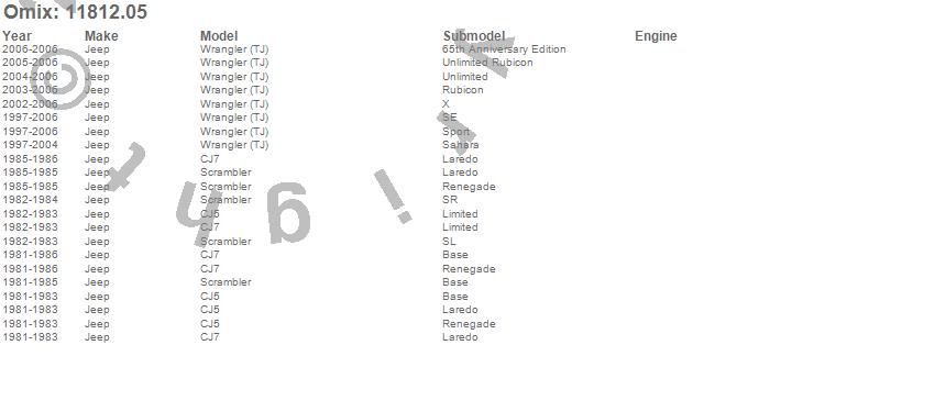 CJ5, CJ7, Scrambler, Wrangler (LJ), Wrangler (TJ), Jeep, 2006, 2005, 2004, 2003, 2002, 2001, 2000, 1999, 1998, 1997, 1986, 1985, 1984, 1983