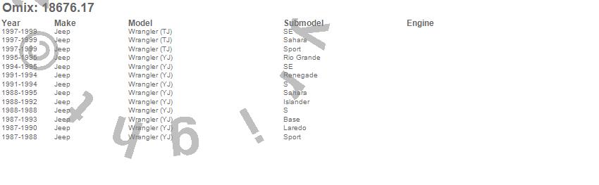 Wrangler (TJ), Wrangler (YJ), Jeep, 1999, 1998, 1997, 1995, 1994, 1993, 1992, 1991, 1990, 1989, 1988, 1987