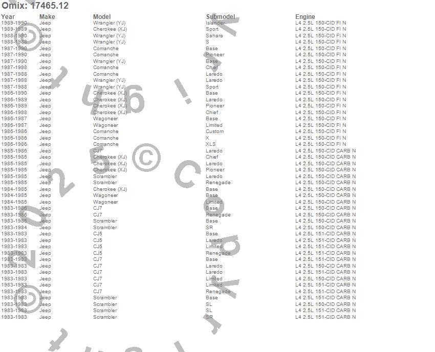 Cherokee (XJ), CJ5, CJ7, Comanche, Scrambler, Wagoneer, Wrangler (YJ), Jeep, 1990, 1989, 1988, 1987, 1986, 1985, 1984, 1983
