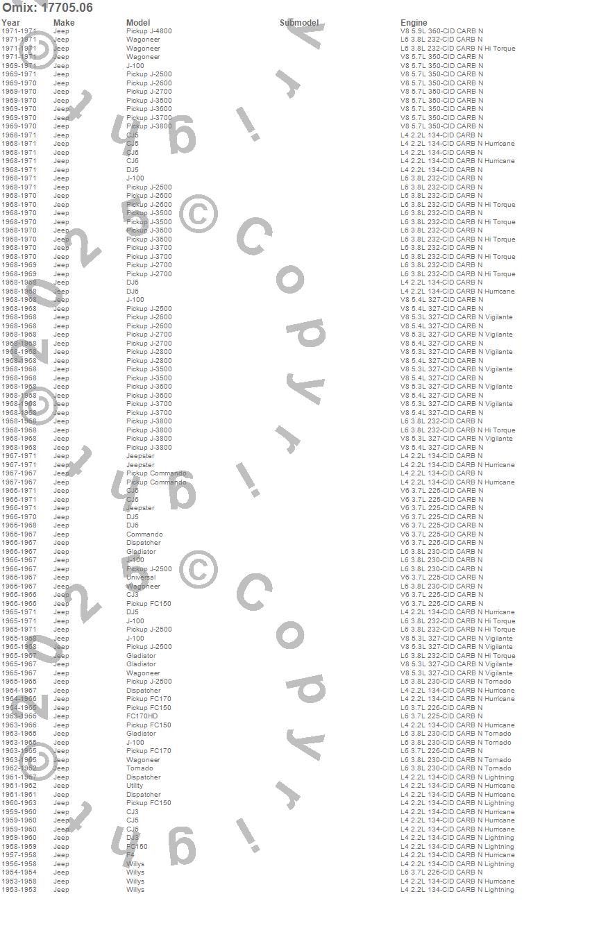 CJ3, CJ5, CJ6, Commando, Dispatcher, DJ3, DJ5, DJ6, F4, FC150, FC170, FC170HD, Gladiator, J-100, J-2500, J-2600, J-2700, J-2800, J-3500, J-3600