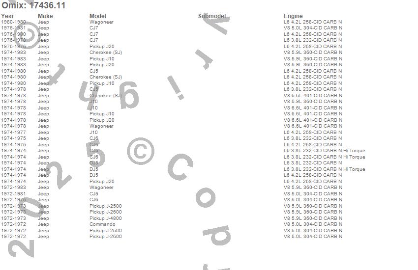 Cherokee (SJ), CJ5, CJ6, CJ7, Commando, DJ5, J-2500, J-2600, J-4800, J10, J20, Wagoneer, Jeep, 1983, 1982, 1981, 1980, 1979, 1978, 1977