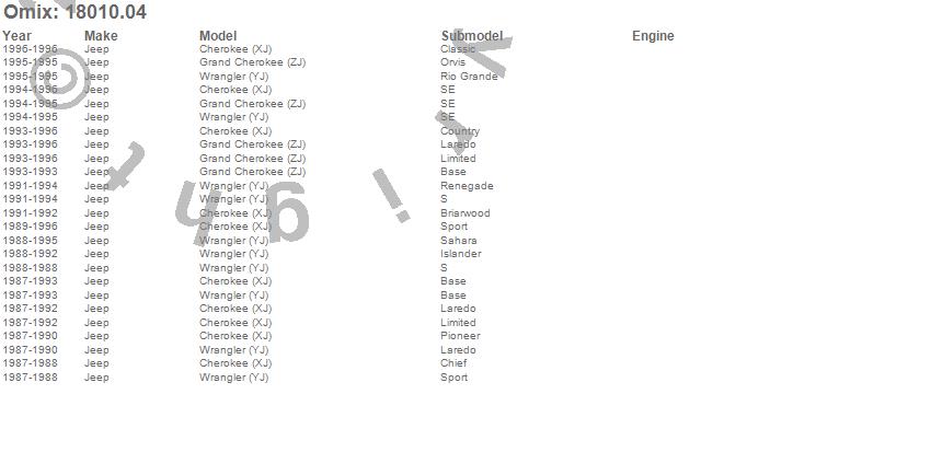 Cherokee (XJ), Grand Cherokee (ZJ), Wrangler (YJ), Jeep, 1996, 1995, 1994, 1993, 1992, 1991, 1990, 1989, 1988, 1987