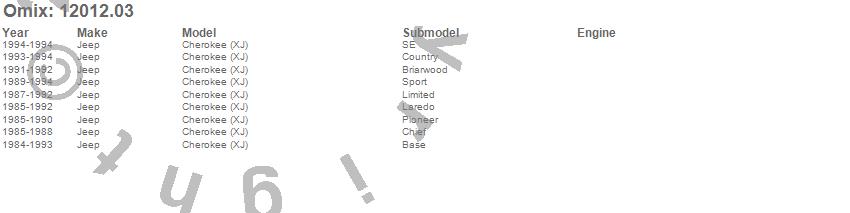 Cherokee (XJ), Jeep, 1994, 1993, 1992, 1991, 1990, 1989, 1988, 1987, 1986, 1985, 1984