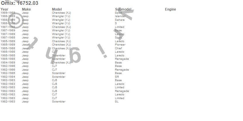 Cherokee (XJ), CJ5, CJ7, Scrambler, Wrangler (YJ), Jeep, 1989, 1988, 1987, 1986, 1985, 1984, 1983, 1982