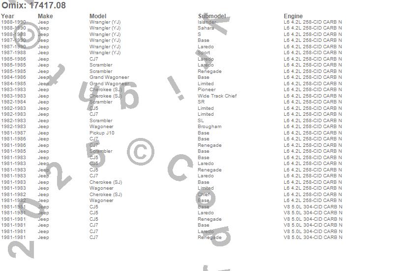 Cherokee (SJ), CJ5, CJ7, Grand Wagoneer, J10, Scrambler, Wagoneer, Wrangler (YJ), Jeep, 1990, 1989, 1988, 1987, 1986, 1985, 1984, 1983, 1982, 1981