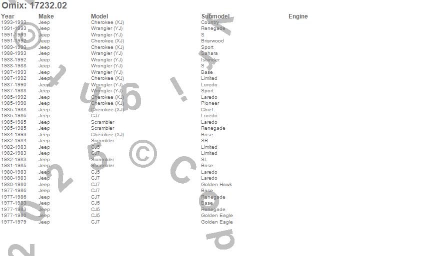 Cherokee (XJ), CJ5, CJ7, Scrambler, Wrangler (YJ), Jeep, 1993, 1992, 1991, 1990, 1989, 1988, 1987, 1986, 1985, 1984, 1983, 1982, 1981, 1980