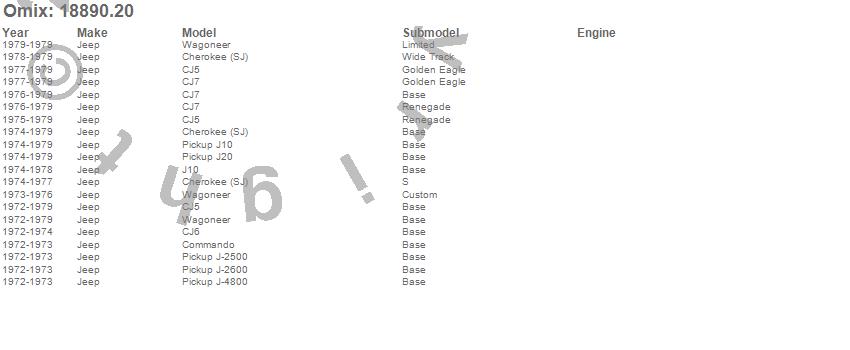 Cherokee (SJ), CJ5, CJ6, CJ7, Commando, J-2500, J-2600, J-4800, J10, J20, Wagoneer, Jeep, 1979, 1978, 1977, 1976, 1975, 1974, 1973, 1972