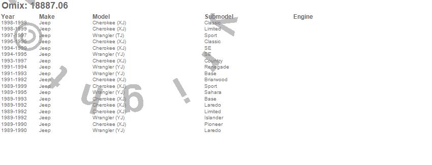 Cherokee (XJ), Wrangler (TJ), Wrangler (YJ), Jeep, 1999, 1998, 1997, 1996, 1995, 1994, 1993, 1992, 1991, 1990, 1989