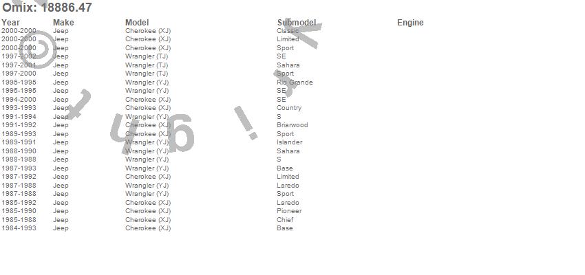 Cherokee (XJ), Wrangler (TJ), Wrangler (YJ), Jeep, 2002, 2001, 2000, 1999, 1998, 1997, 1996, 1995, 1994, 1993, 1992, 1991, 1990, 1989, 1988, 1987
