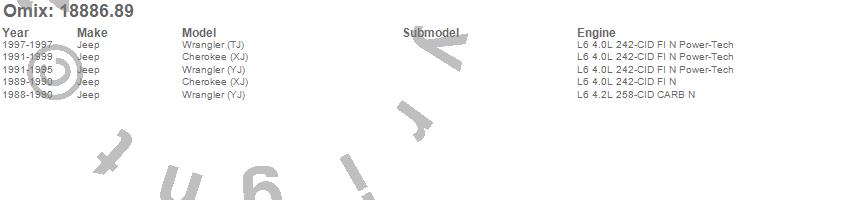Cherokee (XJ), Wrangler (TJ), Wrangler (YJ), Jeep, 1999, 1998, 1997, 1996, 1995, 1994, 1993, 1992, 1991, 1990, 1989, 1988