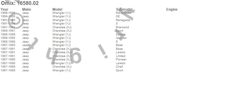 Cherokee (XJ), Wrangler (YJ), Jeep, 1995, 1994, 1993, 1992, 1991, 1990, 1989, 1988, 1987