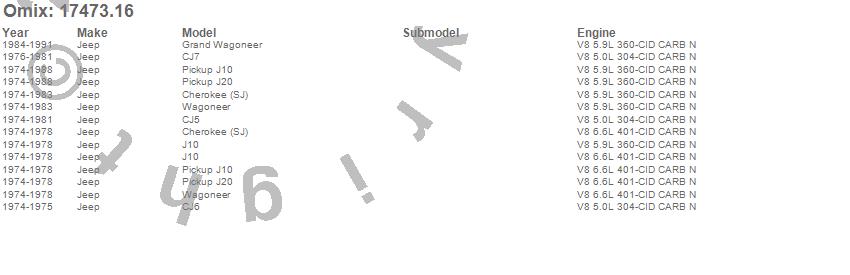 Cherokee (SJ), CJ5, CJ6, CJ7, Grand Wagoneer, J10, J20, Wagoneer, Jeep, 1991, 1990, 1989, 1988, 1987, 1986, 1985, 1984, 1983, 1982, 1981
