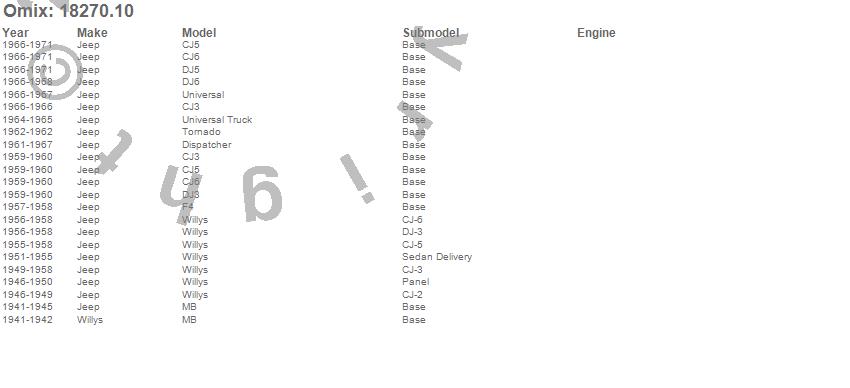 CJ3, CJ5, CJ6, Dispatcher, DJ3, DJ5, DJ6, F4, MB, Tornado, Universal, Universal Truck, Willys, Jeep, Willys, 1971, 1970, 1969, 1968, 1967