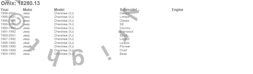 Cherokee (XJ), Jeep, 2001, 2000, 1999, 1998, 1997, 1996, 1995, 1994, 1993, 1992, 1991, 1990, 1989, 1988, 1987, 1986, 1985, 1984