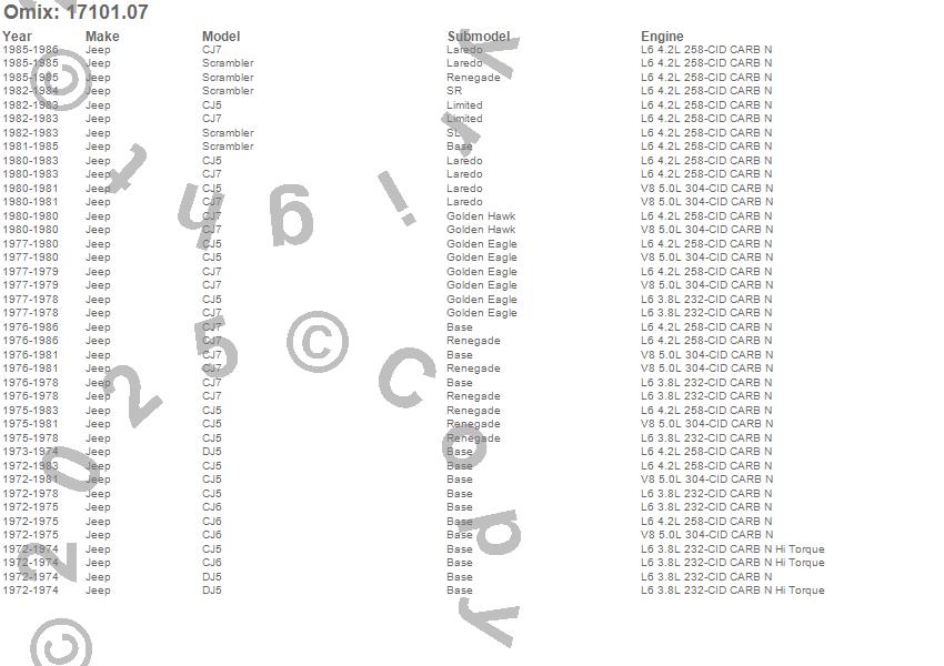 CJ5, CJ6, CJ7, DJ5, Scrambler, Jeep, 1986, 1985, 1984, 1983, 1982, 1981, 1980, 1979, 1978, 1977, 1976, 1975, 1974, 1973