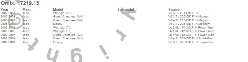 Grand Cherokee (WJ), Grand Cherokee (WK), Liberty, Wrangler (JK), Wrangler (LJ), Wrangler (TJ), Jeep, 2011, 2010, 2009, 2008, 2007, 2006, 2005, 2004, 2003