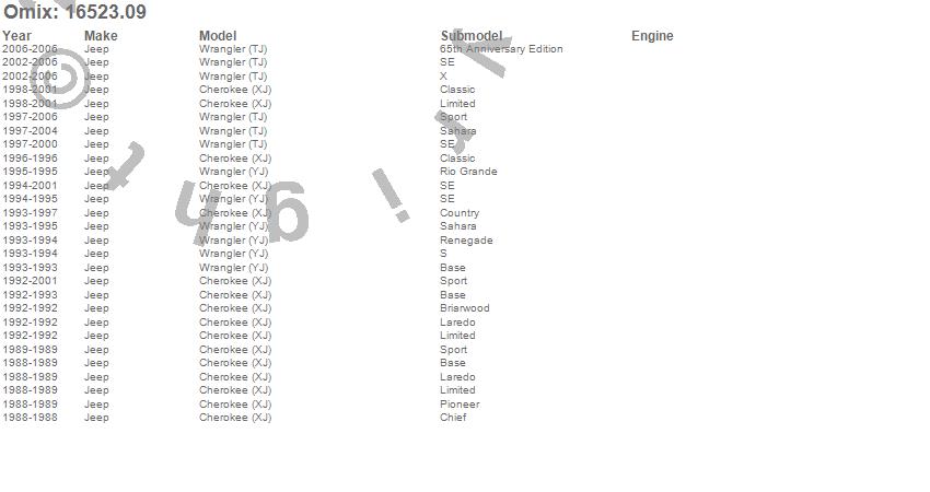 Cherokee (XJ), Wrangler (TJ), Wrangler (YJ), Jeep, 2006, 2005, 2004, 2003, 2002, 2001, 2000, 1999, 1998, 1997, 1996, 1995, 1994, 1993, 1992, 1989