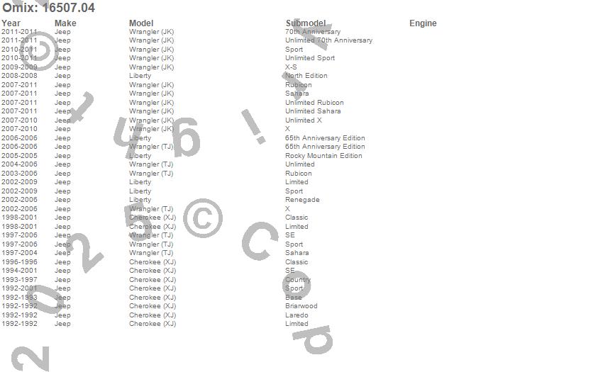 Cherokee (XJ), Liberty, Wrangler (JK), Wrangler (LJ), Wrangler (TJ), Jeep, 2011, 2010, 2009, 2008, 2007, 2006, 2005, 2004, 2003, 2002, 2001, 2000, 1999, 1998
