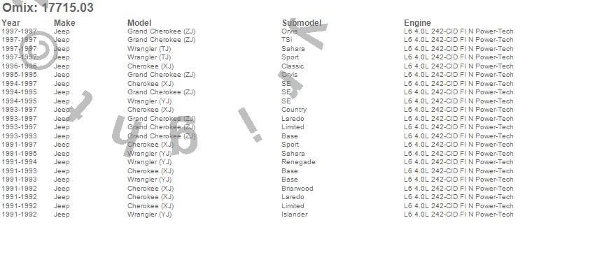 Cherokee (XJ), Grand Cherokee (ZJ), Wrangler (TJ), Wrangler (YJ), Jeep, 1997, 1996, 1995, 1994, 1993, 1992, 1991