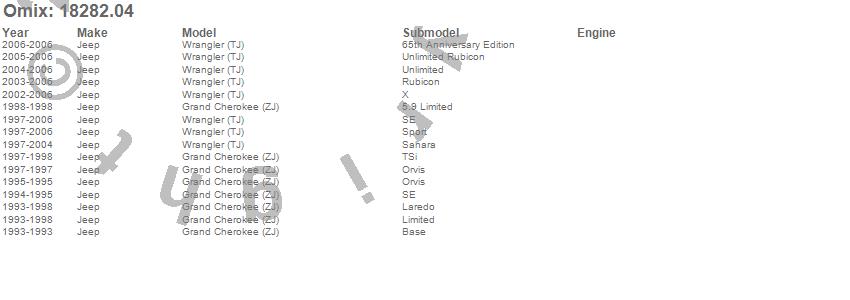 Grand Cherokee (ZJ), Wrangler (LJ), Wrangler (TJ), Jeep, 2006, 2005, 2004, 2003, 2002, 2001, 2000, 1999, 1998, 1997, 1996, 1995, 1994, 1993