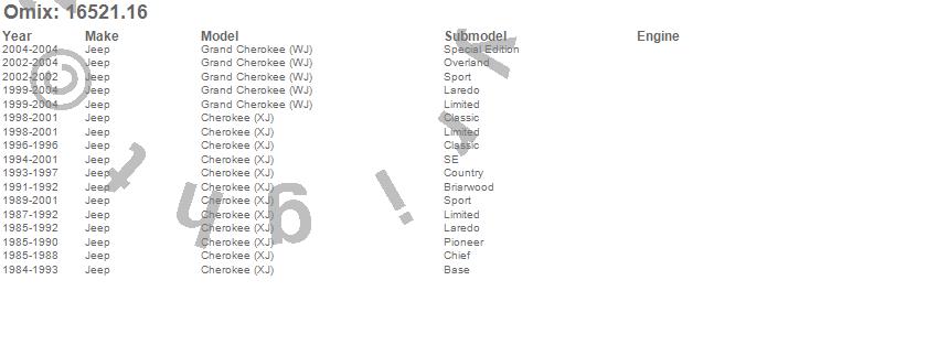 Cherokee (XJ), Grand Cherokee (WJ), Jeep, 2004, 2003, 2002, 2001, 2000, 1999, 1998, 1997, 1996, 1995, 1994, 1993, 1992, 1991, 1990, 1989, 1988